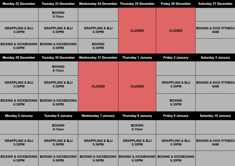 BELOW IS OUR FULL TIMETABLE RESTARTING FROM MONDAY 12TH JAN 2026
